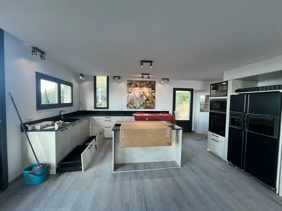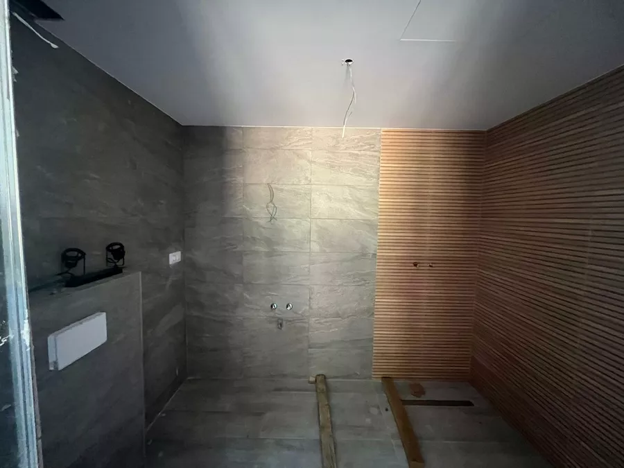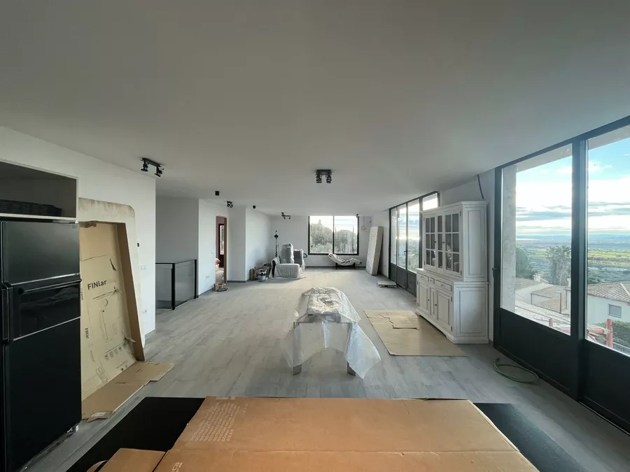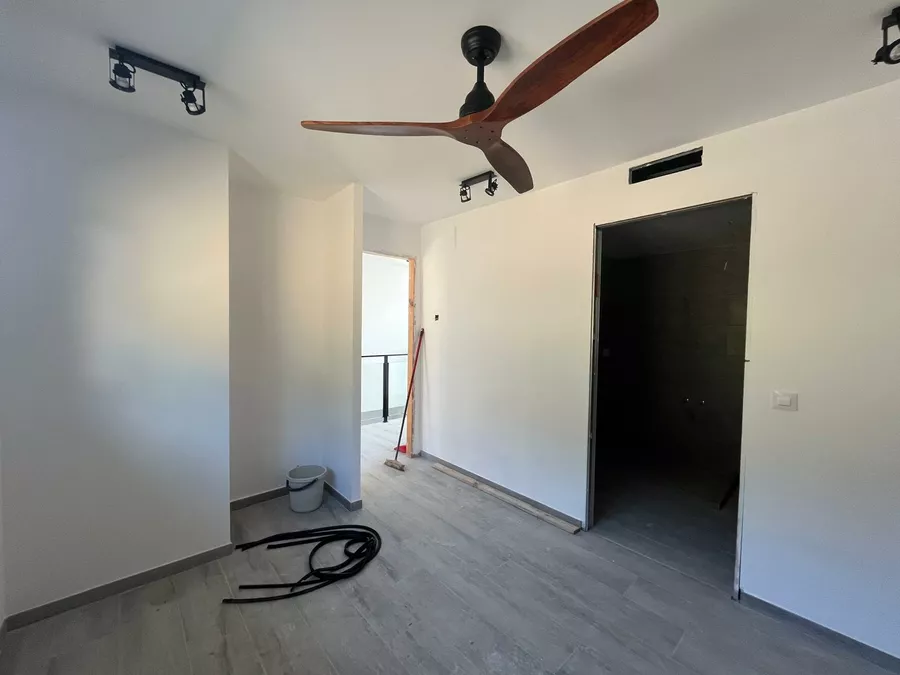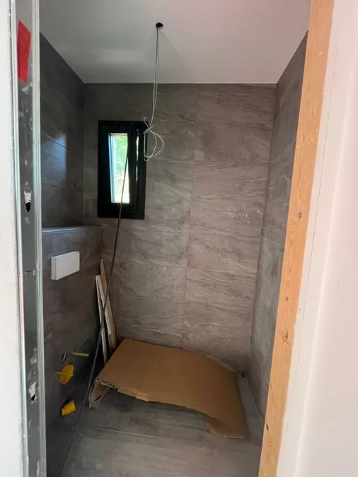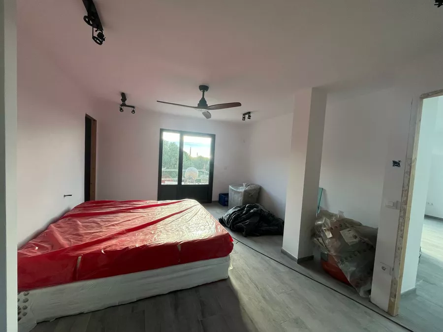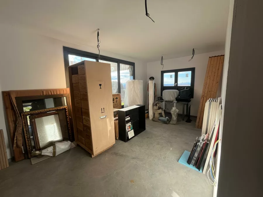 Das Haus ist derzeit zu etwa 80 % fertiggestellt und wird in seinem aktuellen, unfertigen Zustand verkauft. Es sind noch Arbeiten erforderlich, darunter die Außenbeschichtung (Monocouche), die Gartengestaltung mit Rampen, die Außenumzäunung, die Fertigstellung der Elektroinstallation (Vorinstallation bereits vorhanden) sowie die Sanitäranlagen, Armaturen, Innenausbau, Türen und Einbauschränke.